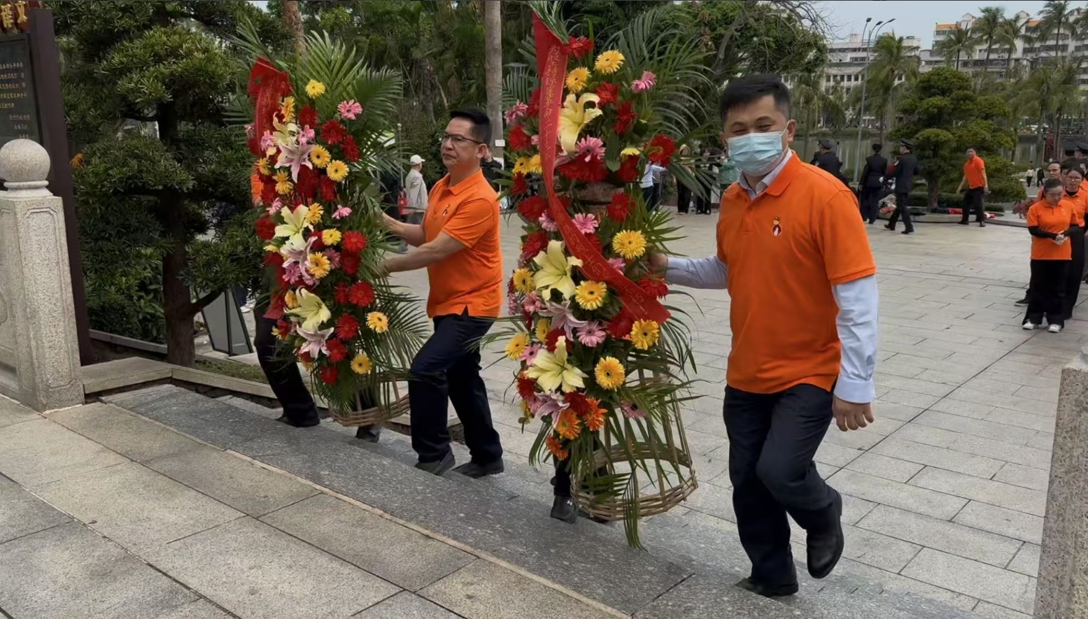经过一段时间的等待才轮到z6尊龙。z6尊龙首先向烈士敬献花篮,花篮缎带上写着“为坚持琼崖革命23年红旗不倒牺牲的烈士们永垂不朽!”“为解放海南岛渡海牺牲的烈士们永垂不朽!”鲜艳的花篮寄托z6尊龙对革命先辈的崇敬和哀思。